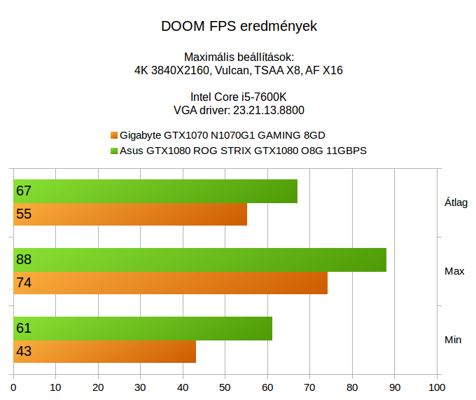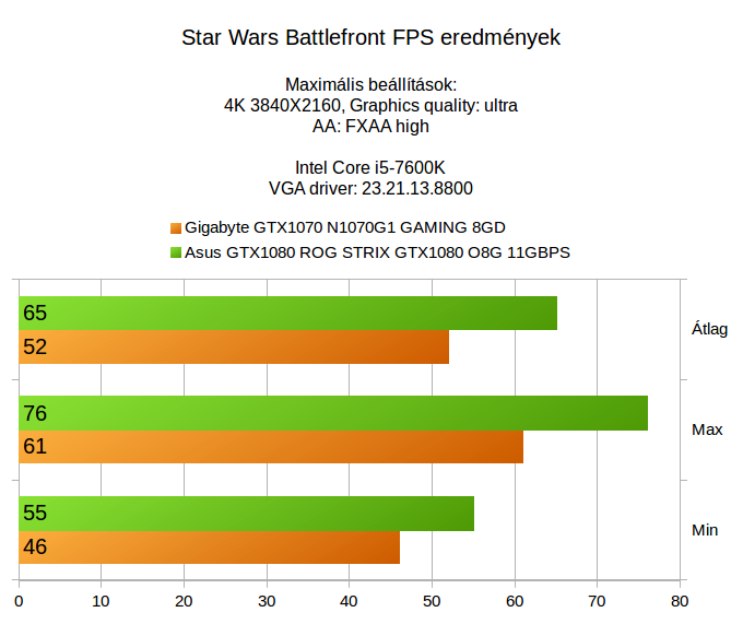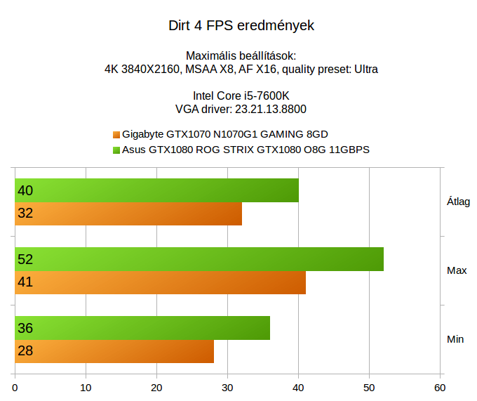 Száz szónak is egy a vége, csak azt tudjuk megerõsíteni, amit a két korábbi tesztben. Ha 4K alatt szeretnél játszani és nem szeretnéd lebutítani a megjelenítést, akkor minimum egy GTX1080 az ajánlott kártya, ha telik rá, akkor akár egy GTX1080Ti is. A GTX1070 sajnos még nem minden játék alatt nyújt elegendõ teljesítményt, az õ vadászterülete egyértelmûen a Full HD, esetleg az 1440p, ami fél úton van a Full HD és a 4K között, de a 4K már sok esetben nagy falat egy ilyen kártyának.