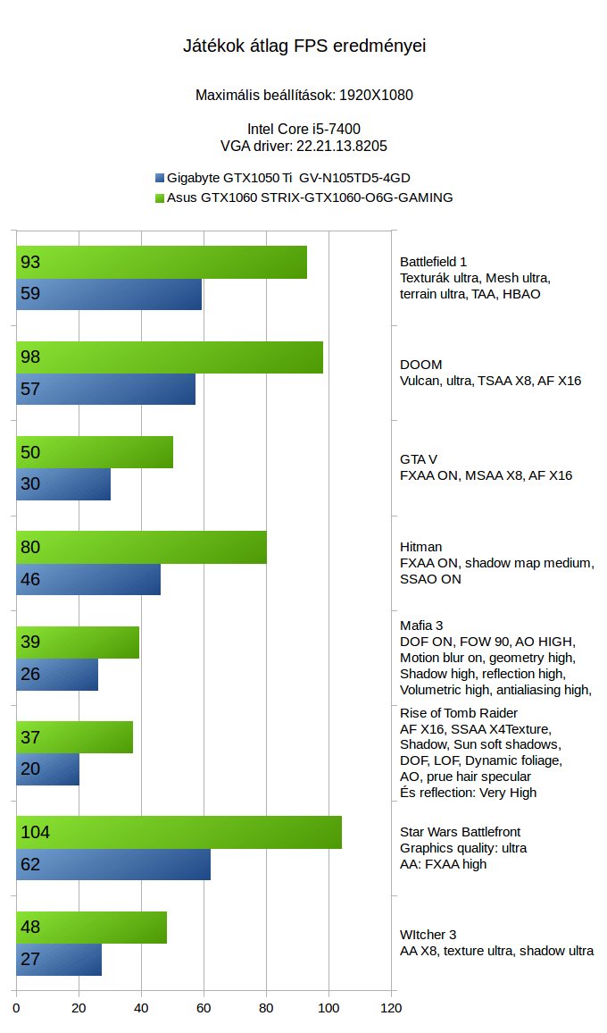 Korábban már összehasonlítottuk a két kártyát, most ismét egy GTX1050Ti és egy GTX1060 6GB összehasonlító tesztje következik Intel i5-7400 konfigurációban.