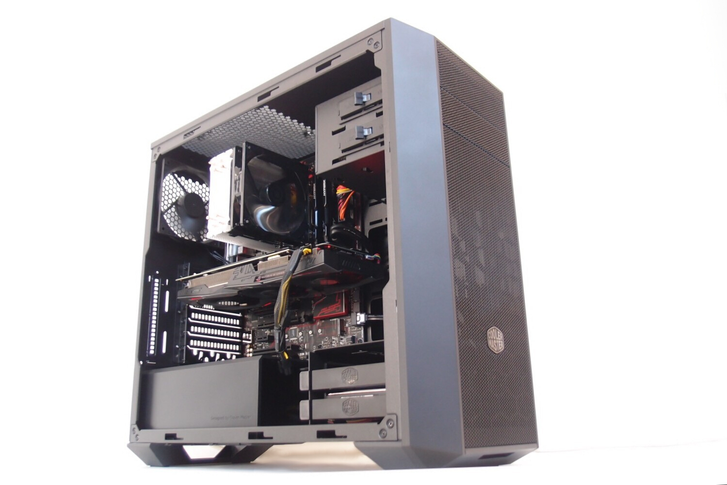 A Cooler Master MasterBox 5-ös gépháza termetes méretének köszönhetõen egy jól szellõzõ és szerelhetõ darab, amibe a legnagyobb videokártyák is kényelmesen elférnek, ATX alaplapokon és akár 167 mm magas CPU hûtõ társaságában. 2 HDD, 2 SSD, és 2 optika hely található odabent.