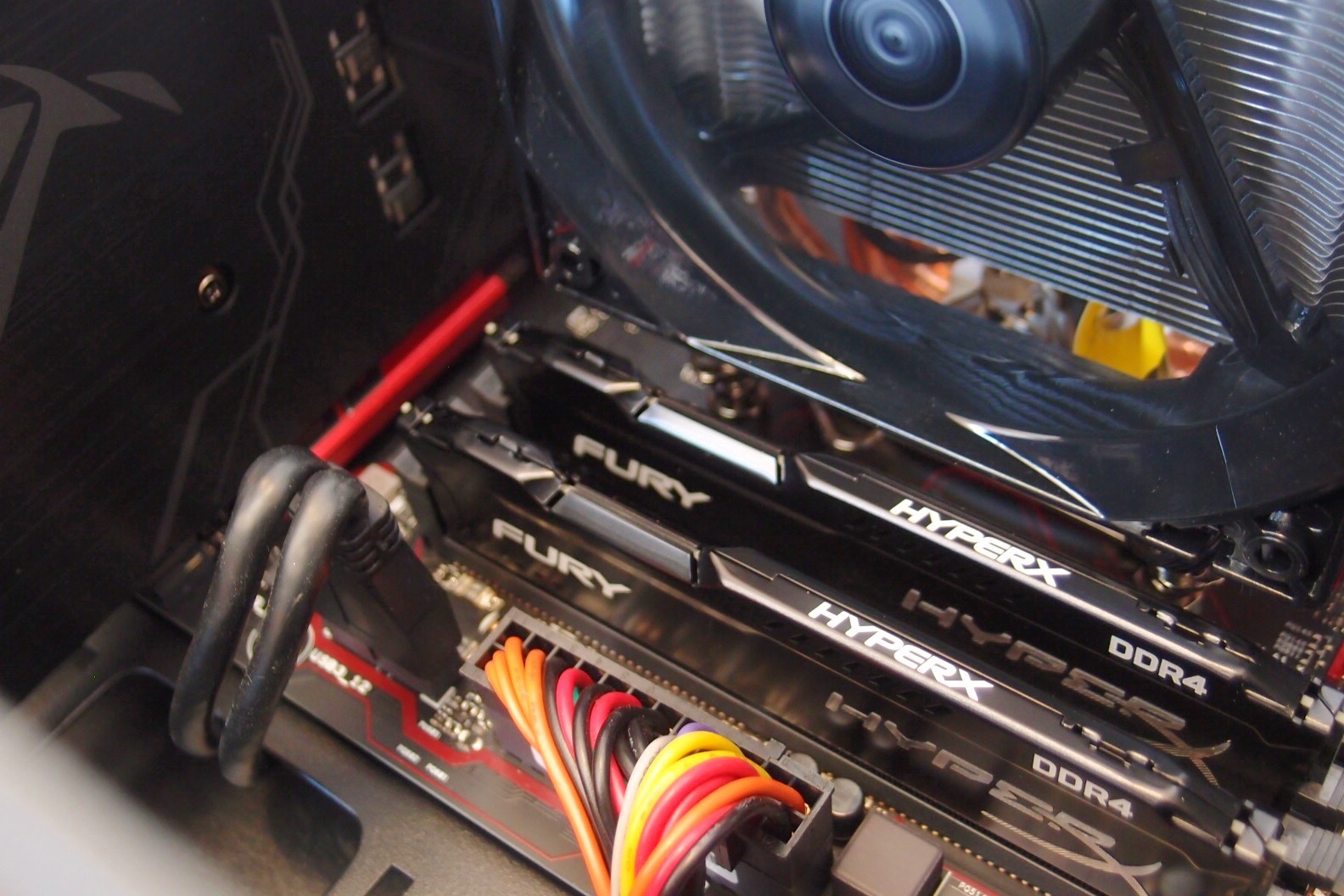 2133 MHz-en ketyegõ, 2X8 GB memória került az alaplapba, CL14-es idõzítéssel, 1.2 V-os üzemi feszültséggel, HyperX Fury hûtõbordával.