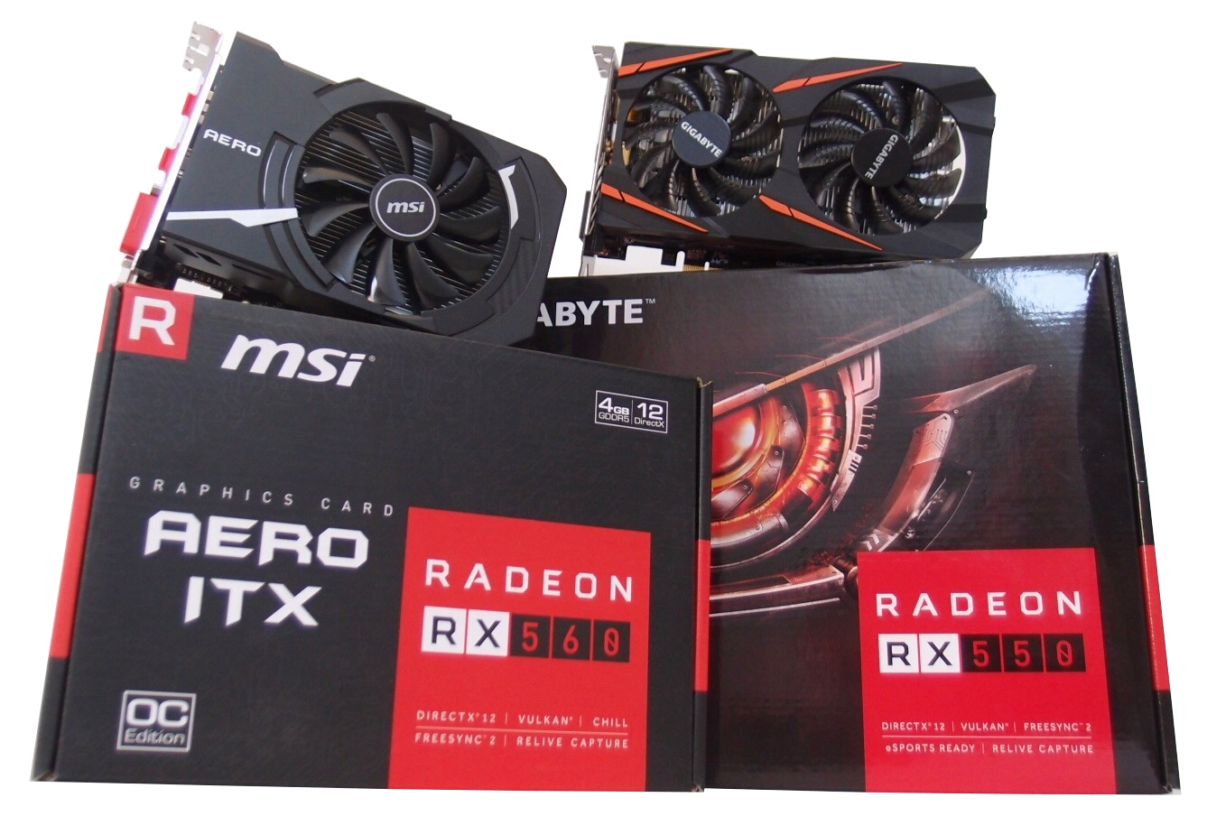 MSI RX560 4GB GDDR5 Aero ITX 4G OC videokártya és Gigabyte RX550 2GB GDDR5 GV-RX550GAMING OC-2GD videokártya