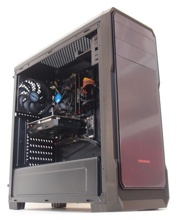 Gigabyte GA-B250M-DS3H alaplap, Intel Core i5-7500 BX80677I57500 processzor, G.Skill Aegis 2x4GB DDR4 2133MHz F4-2133C15D-8GIS memória, MSI RX560 4GB GDDR5 Aero ITX 4G OC videokártya, J&A 120GB Leven JS500 LVN-JS500-120G SSD meghajtó, Seagate 1TB SATA3 64MB ST1000DM010 merevlemez, EVGA 600W 100-W1-0600-K2 tápegység, Enermax Ostrog Lite ECB3080BI-02 számítógép ház+