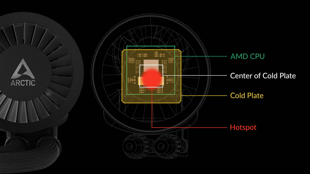 Az AMD több generáció óta multi-die chiplet kialakítást használ Ryzen asztali processzoraihoz. Az Intel processzorokkal ellentétben ezeken a processzorokon a hotspot nem az IHS alatt helyezkedik el, hanem kissé eltolva. Az AMD rögzítési megoldása ezért 5 mm-es eltolással rendelkezik az optimális hőelvezetés elérése érdekében.