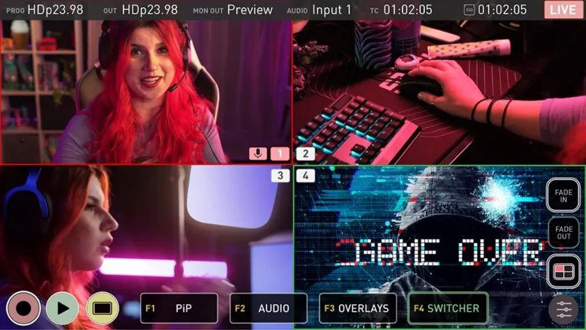 Az AtomX Cast-tal felszerelt Ninja rugalmas vezérlési lehetőségei lehetővé teszik, hogy a HDMI-források közötti váltáshoz az érintőképernyőt vagy a fizikai gombokat használd a webes közvetítés (webcast) kimenetének kiválasztásához. Az egyes bemenetek megvilágított gombjai, valamint a Program és az Előnézeti állapot színes LED megvilágítása tovább egyszerűsítik a működést, és lehetővé teszik a könnyű váltást és az élő közvetítést, még gyengén megvilágított környezetben is.