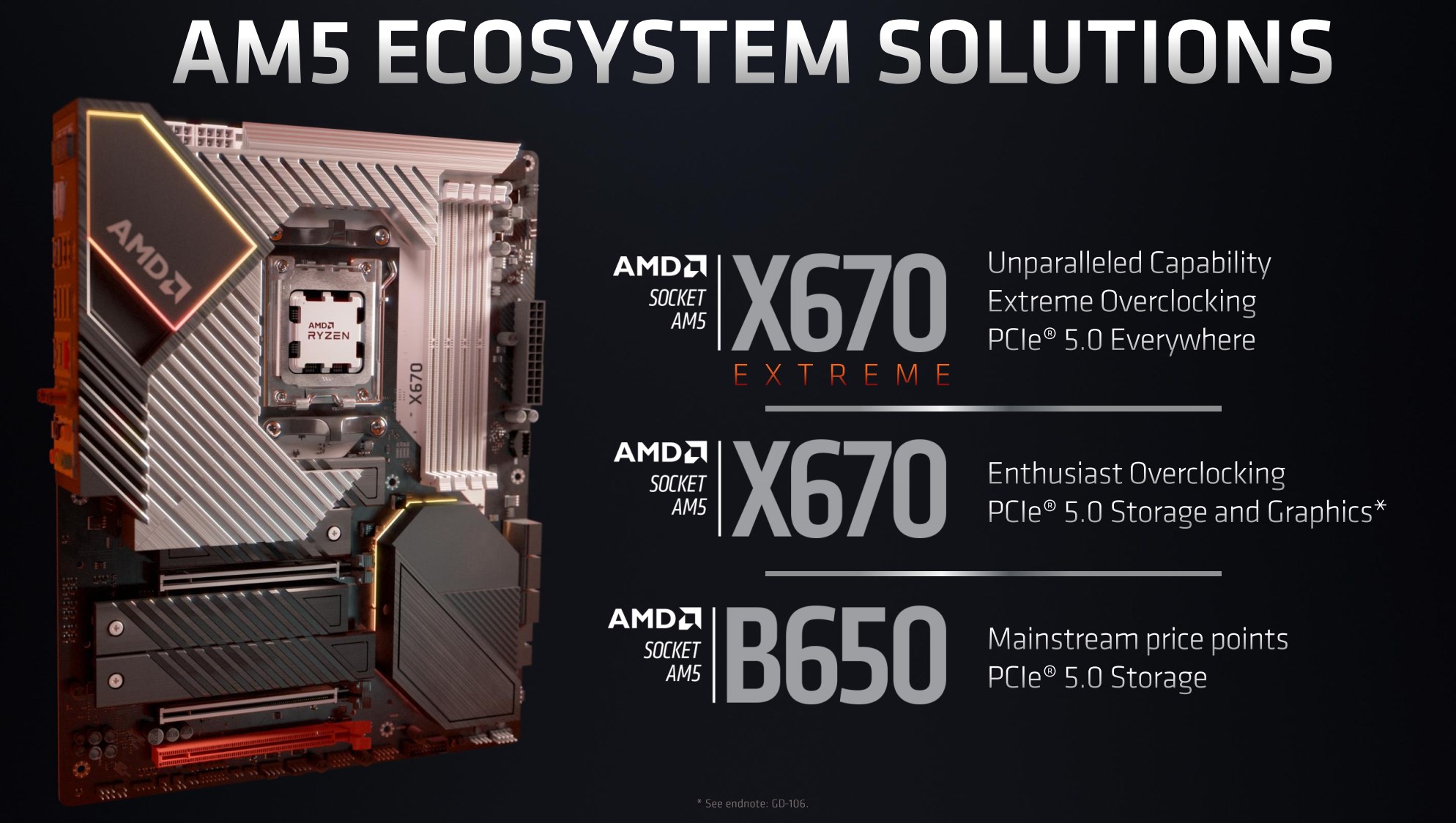 Ez a csúcs chipkészlet, amelyet úgy terveztek, hogy a legjobbak legjobbját nyújtsa azoknak, akik megengedhetik maguknak. David McAfee szerint kétcsatornás DDR5-támogatással érkezik "a legextrémebb túlhajtási mozgástérrel". És ha már a túlhajtásnál tartunk, az X670E lapok elkerülhetetlenül a legtöbb teljesítményfázissal megpakolt VRM-mel érkeznek majd, "hogy a teljesítmény és a túlhajtás határait feszegessék".