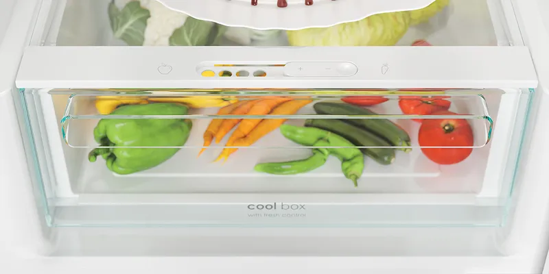 A frissességszabályzóval ellátott nagy méretű Cool Box frissentartó rekesznek köszönhetően hosszú ideig frissen tarthatod gyümölcseidet és zöldségeidet, mindig a megfelelő páratartalom mellett.