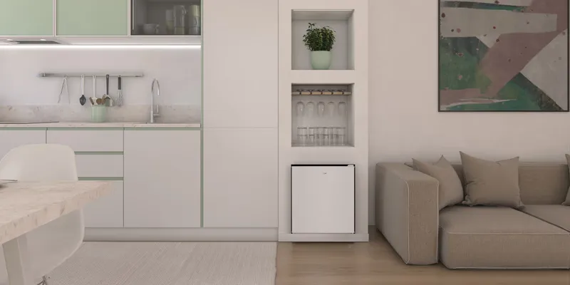 A szabadon álló minibár bárhová elhelyezhető, és tökéletes az élelmiszerek kis helyen történő tárolására.