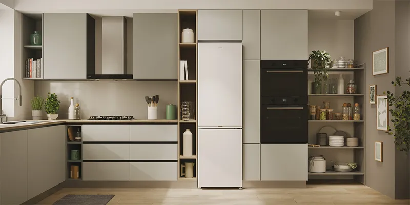 A hűtőszekrény tökéletesen illeszkedik konyhája dizájnjába: a fogantyú és az ajtópánt tökéletesen illeszkedik a konyhapulthoz, a rejtett zsanérok pedig rugalmas elhelyezést tesznek lehetővé 90°-os ajtónyitás mellett.
