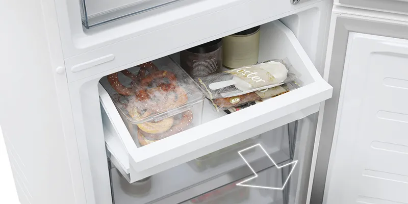 A méret többé nem akadály! Ez a kombinált hűtőszekrény mindössze 55 cm széles, mégis 280 literes kapacitással és nagy méretű fagyasztófiókokkal rendelkezik, így minden élelmiszered – még a legnagyobb darabok is – kényelmesen elférnek benne.