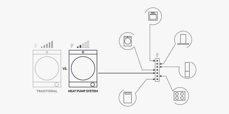 Egyszerre két eszközt akartál üzemeltetni, de féltél, hogy a biztosítékok kiégnek A Candy-nek erre a problémára is van megoldása: a hőszivattyús rendszer, amely nagyon alacsony, 0,7 kW/h energiafogyasztású, ami körülbelül egyharmada a hagyományos kondenzációs szárítógép fogyasztásának. Ezt egy zárt keringési rendszer biztosítja, amely megakadályozza a hőszórást, és ahol a készülék alacsonyabb hőmérsékleten működik. Ez lehetővé teszi a mosógép és a szárítógép vagy más készülékek egyidejű működését, amely egyszerre időt és pénzt takarít meg.