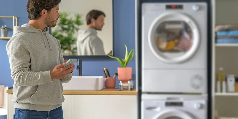 Hogyan szárítsd meg a kedvenc farmerodat vagy az elegáns pólót, amit szeretsz A szárítógépet okostelefonon keresztül hanggal kezelheted, vagy megkérdezheted digitális asszisztenseidet, amikor otthon vagy.