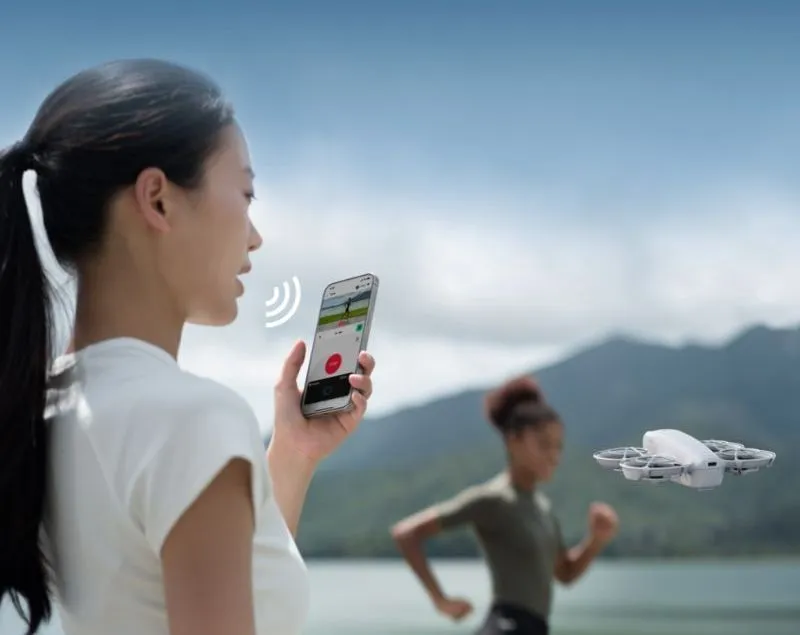 A DJI Neo képes Wi-Fi-n keresztül kapcsolódni okostelefonokhoz, így további távirányítóra nincs szükség. A Neo a DJI Fly alkalmazás felületén található virtuális botkormányok segítségével irányítható, akár 50 méteres hatótávolsággal. [8] Az alkalmazásban beállítható a követési szög és a távolság, így szabadon filmezhet távolról vagy közelről, tetszés szerint.