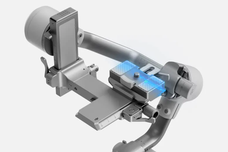 A felső gyorskioldó lemez három pozicionáló nyílást tartalmaz, amelyek lehetővé teszik a különböző beépítési helyzetek kiválasztását a kamerád alapján, így több kiegyensúlyozó helyet nyújt. Amikor el kell távolítanod a kamerát a gimbalról, és újra fel kell helyezned, a memória is segíti a gyors áthelyezést anélkül, hogy befolyásolná a kiegyensúlyozást.