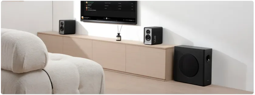 Az Edifier T5s egy nagy teljesítményű analóg előlapot egy digitális erősítővel ötvöz a pontos hangátalakítás és erősítés érdekében. Beépített digitális jelfeldolgozója (DSP) biztosítja a precíz aluláteresztő szűrést és fázisillesztést, lehetővé téve a zökkenőmentes integrációt a meglévő hangszórórendszerrel és a sima, kiegyensúlyozott zenehallgatási élményt.