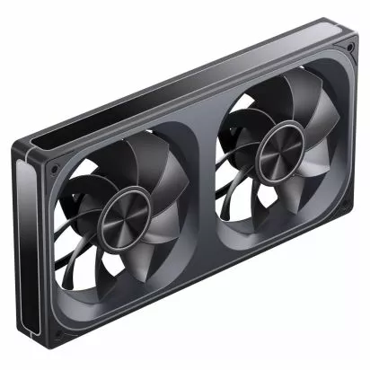140mm-es házhűtő ventilátor PWM sebesség szabályzással, gyűrűs lapát kialakítással és rezgéscsillapítós felfogatókkal.