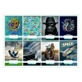 Design füzet négyzetrácsos belívekkel. 16 db füzet (8 különböző vagány minta, azaz 2db/minta) van egy csomagban. 70 g-os füzetlapok és 200 g-os műnyomó borító fényes fóliával.