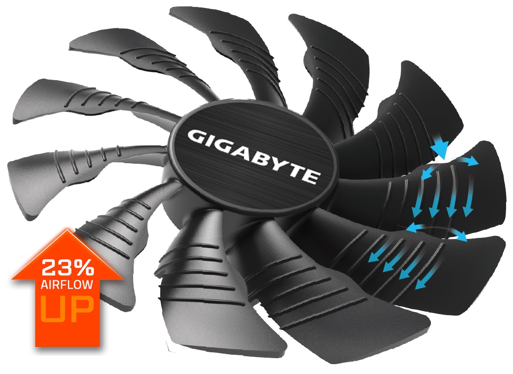 A videokártya hûtését a WINDFORCE 2X hûtõrendszer végzi, két darab 90 mm-es ventilátor segítségével, így biztosítva az alacsony hõmérsékletet, ezáltal az elképesztõ teljesítményt.