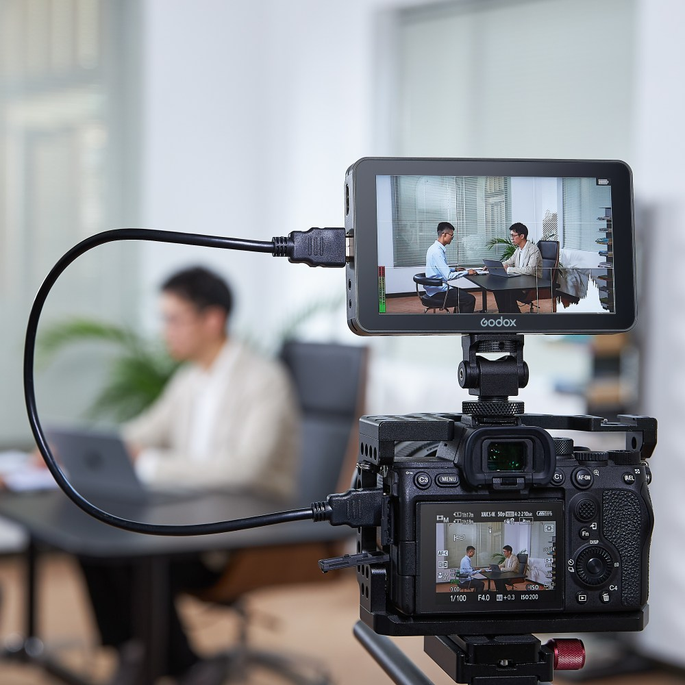 A Godox GM6S egy könnyű, 5,5 hüvelykes kameramonitor továbbfejlesztett, 1200 cd/m2 fényerejű kijelzővel. A HDMI bemenet és kimenet egyaránt támogatja a DCI és az UHD 4K videót. Egy kameravezérlő interfész áll rendelkezésre a beállítások átviteléhez a monitorról külön megvásárolható kábeleken keresztül. A 3,5 mm-es fejhallgató-csatlakozó jelet ad ki a beépített hangvezérléshez. Az SD-kártyanyílás segítségével akár huszonöt 3D LUT tölthető a monitorba.