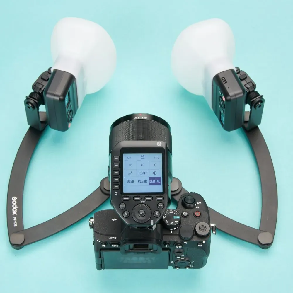 A Godox a Sony Europe-pal együttműködve kifejlesztette az MF-R76S+ fogászati körvakut, és az MF12-DK1 fogászati vakurendszert, amelyek zökkenőmentesen integrálhatók olyan Sony kamerákkal, mint az A6400, A7M4, A7R5 és ZV-E10, és jól illeszkednek a Sony makróobjektívjéhez, a FE 90mm-hez (SEL90M28G). Azoknak a fogorvosoknak, akik nagyobb pontosságot keresnek a világítás beállításában, az MF12-DK1 az ideális eszköz szélesebb lehetőségek kibontakoztatására és a nehezebb fogászati fotózási feladatok megoldására. Az Alessandro Devigus, a híres fogorvos és a Sony és a Godox nagykövete által tesztelt fogászati vakurendszer a legmagasabb szintű biztonságot és megbízhatóságot nyújtja a fogászati fotózásban.