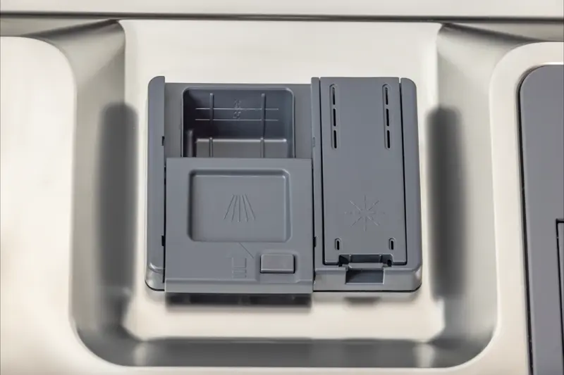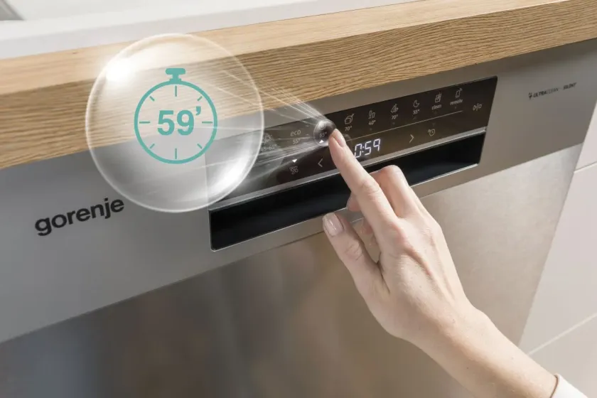 Az új Gorenje mosogatógépek minimalista csúsztatható mosogatószer-adagolóval vannak felszerelve, ahonnan a tok hangtalanul kipattan. A könnyen tisztítható adagoló funkcionálisan jobb mosogatószer adagolást tesz lehetővé, és minden típusú edényt elmosogat.