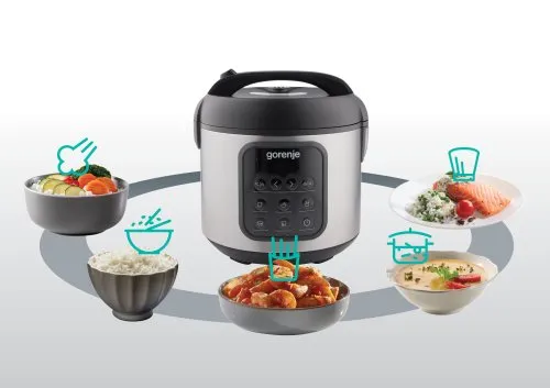 A Gorenje multicooker különböző főzési lehetőségeket kínál, így sokoldalúságot biztosít a konyhában. Élvezd a rizsfőzést, párolást, sütést, gőzölést vagy a saját receptjeidet. Mindezekhez egyetlen konyhai készülékre van szükség, amely kevesebb helyet foglal és bármilyen étel elkészíthető benne.