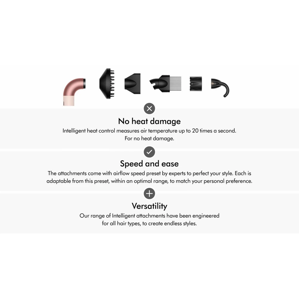 Öt intelligens tartozék van előre beállítva a megfelelő hőmérsékletre és légáramlásra a tökéletes frizurád érdekében. A tartozékokban található RFID-chipek megjegyzik a legutóbb használt beállítást.