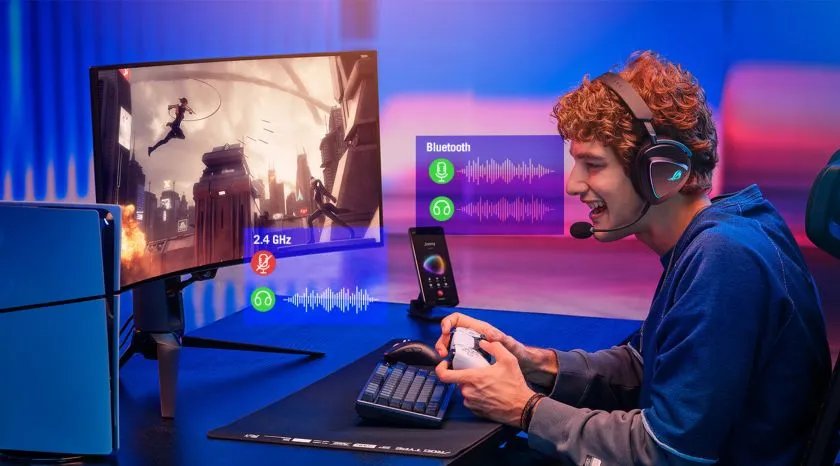 A ROG Delta II háromféle kapcsolattal használható; ezek közül kifejezetten a kompetitív játékokhoz előnyös az ultraalacsony késleltetésű 2,4 GHz-es rádiós kapcsolat. 50 mm-es, titánbevonatos membránnal ellátott hangsugárzói kiegyensúlyozott, valósághű hangjukkal járulnak hozzá a játékok és más alkalmazások élvezetesebbé tételéhez. A csapatjáték során a 10 mm-es szuper-szélessávú mikrofon gondoskodik róla, hogy a hangodat még a legintenzívebb lövöldözés közben is tisztán hallja mindenki. A DualFlow audiotechnológia lehetővé teszi, hogy egyszerre két csatlakoztatott forrást hallgass – és akár a fülrészen egy gombot megnyomva egyszerűen felvedd a telefonhívásokat.