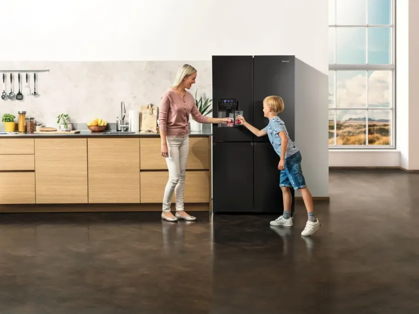 Ez a rendkívül praktikus, beépített jég- és vízadagoló napi 2,2 liter jeget képes előállítani az egész család számára. Anélkül, hogy ki kellene nyitnod a hűtőajtót, választhatsz jégkocka, zúzott jég vagy hűtött víz közül – bármikor, amikor csak szeretnéd. A legegyszerűbb módja annak, hogy mindig kéznél legyenek a frissítő italok.