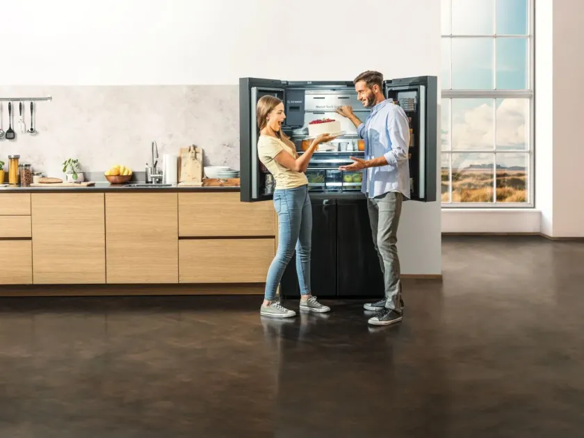 Ez a hűtő-fagyasztó teljes mértékben alkalmazkodik az igényeidhez. Három különálló hűtőtérrel és rugalmas hőmérséklet beállításokkal rendelkezik – hűtő, fagyasztó és My Fresh Choice zóna –, mindegyik saját vezérléssel. A hűtő és a fagyasztó hőmérsékletét úgy állíthatod be, ahogy neked a legmegfelelőbb. A My Fresh Choice rekesz tökéletes választás, ha több hűtő- vagy fagyasztókapacitásra van szükséged, hiszen a legszélesebb hőmérsékleti tartományt kínálja.