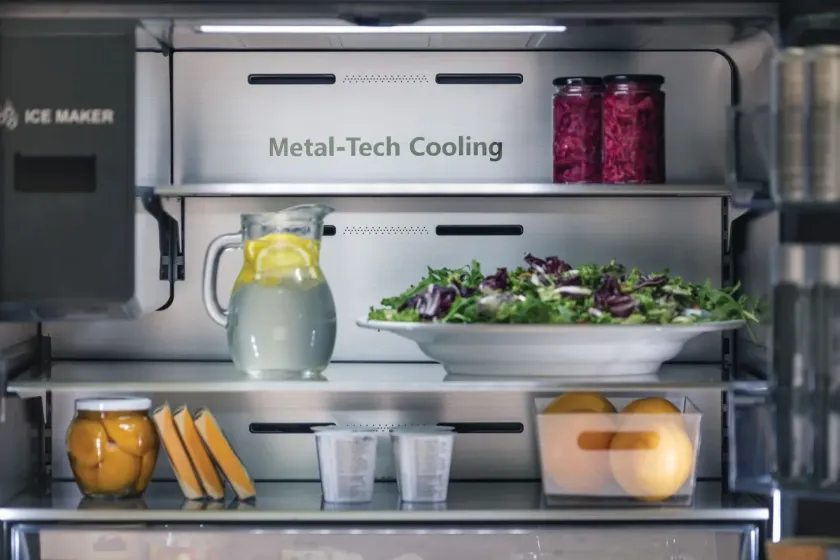 A hűtő hátsó fala rozsdamentes acélborítást kapott, amely biztosítja, hogy a hideg levegő egyenletesen oszoljon el belülről kifelé. Ez a fejlett technológiai kombináció mindig ideális hőmérsékletet és páratartalmat garantál.