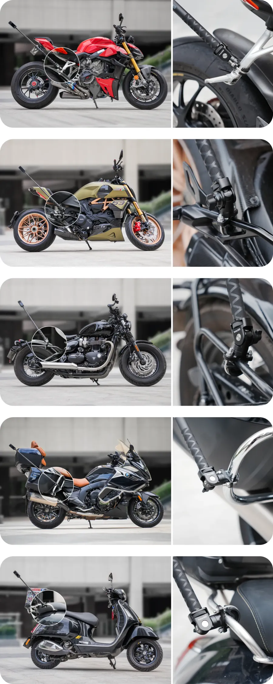 Az U-csavar alkalmazásakor használja a két alátétet, hogy a tartót a hagyományos (mainstream) motorkerékpárokhoz igazítsa.