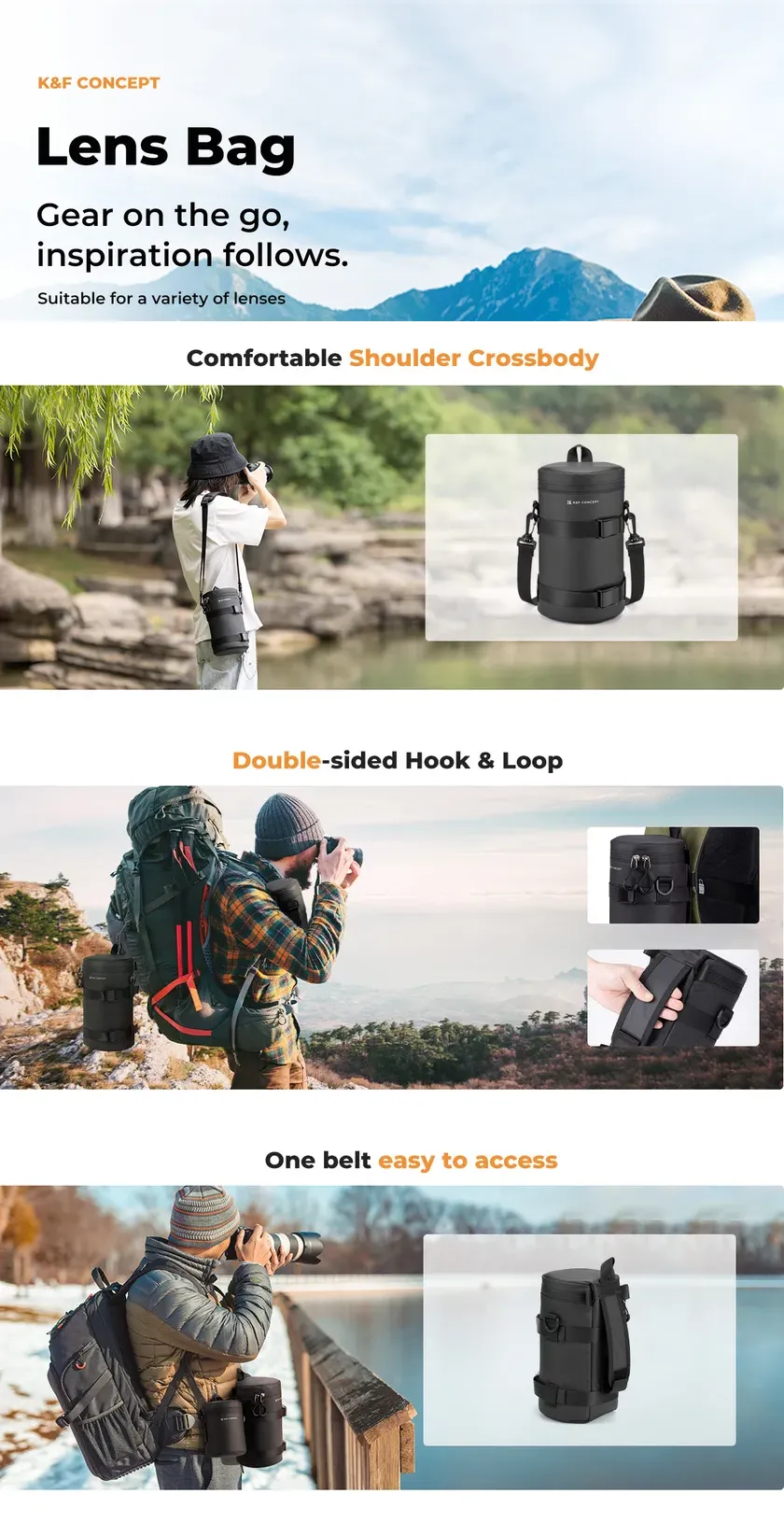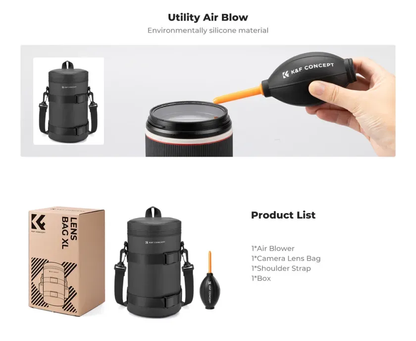 Vízálló kialakítás: Poliészterszálas anyagból készül, vízálló, dupla cipzáras megoldással. Kiemelkedő védelmet nyújt eső és nedvesség ellen, hatékonyan óvja az objektív biztonságát.