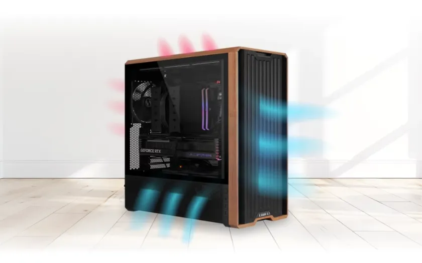 A LANCOOL 217 ház nagy teljesítményű ventilátorokkal van felszerelve elöl, hátul és alul, amelyek erőteljes légáramlást biztosítanak a belső alkatrészek zökkenőmentes és megbízható működéséhez.