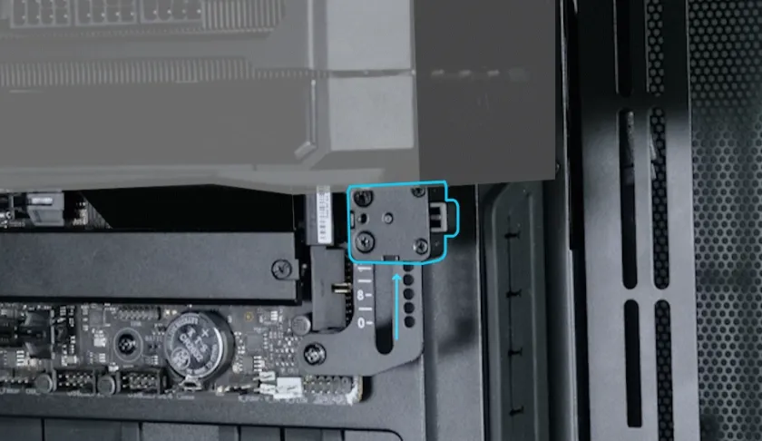 Az állítható alaplaptálca három magassági szinten mozgatható felfelé és lefelé, hogy illeszkedjen a különböző ventilátor- és radiátorkombinációkhoz.