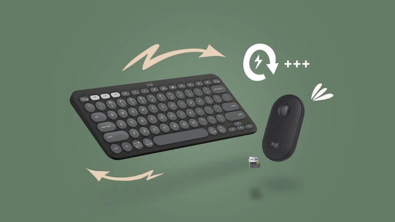 Nagyobb teljesítményre van szüksége A Pebble 2 Combo akár 36 hónapos üzemidőt biztosít a Pebble Keys 2 egérrel (50%-kal több, mint a K380), és akár 24 hónapos üzemidőt a Pebble Mouse 2 egérrel, hogy hosszabb ideig és gond nélkül dolgozhasson.