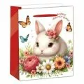 Nyuszi virágokkal ajándéktasak - 11 x 14 cm