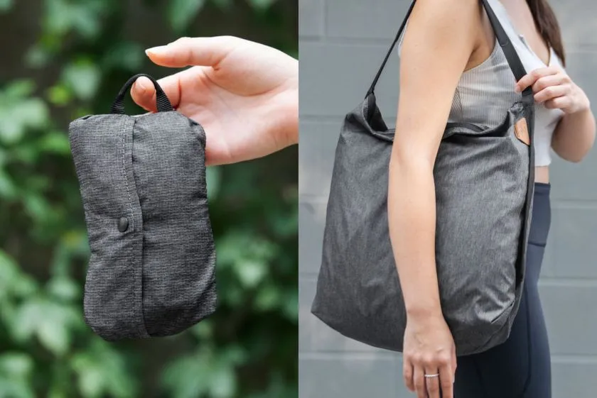 Az ultrakönnyű és rendkívül sokoldalú Peak Design Packable Tote egy strukturálatlan és cipzározható hordtáska, amely kulcsfontosságú fejlesztéseket tartalmaz a többi csomagolható táskához képest: cipzáras nyílás, egy mikroszálas párnázású váll-/kézpánt, valamint egy öngyógyuló nejlon külső réteg, amely egyetlen darabból készült, minimalizálva a varrásokat és a feszültségpontokat. Ráadásul alig nagyobb méretűre csomagolható, mint egy pakli kártya.