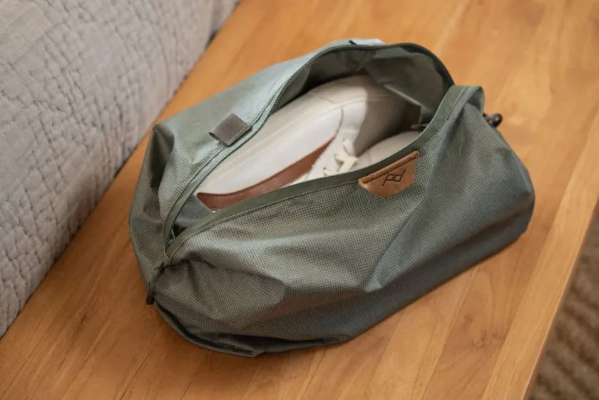 Az erős, ultrakönnyű és rendkívül könnyen csomagolható Shoe Pouch (cipőtok) külön tárolási lehetőséget biztosít cipők vagy ruhák számára. Remekül illik bármilyen bőröndhöz vagy táskához, és méretének köszönhetően tökéletesen illeszkedik a Peak Design utazótáskákba. Az egyetlen darab öngyógyuló 70D nejlonból készült, egyedi mintázatú Shoe Pouch mindössze 48 g súlyú. Amikor nem használod a Shoe Pouch-ot, tárold a beépített tárolótasakban. Tökéletes kis táska, ha több tárolóhelyre vagy rendszerezésre van szükséged utazás közben. A fő nyíláson található masszív #5 UltraZip cipzár évtizedekig tartó használatot bír ki a saját fejlesztésű kopásálló cérnának köszönhetően. Mérettől függően jellemzően 1-2 pár cipő fér bele. Fair Trade tanúsítvánnyal rendelkezik és 100%-ban karbonsemleges. Az anyag oldatban festett a vízfogyasztás jelentős csökkentése érdekében, a Raw szín pedig színezetlen a még nagyobb víz-/energiamegtakarítás érdekében. Bármely bőröndben vagy táskában használható, és méretének köszönhetően tökéletesen illeszkedik bármely Peak Design utazótáskába.