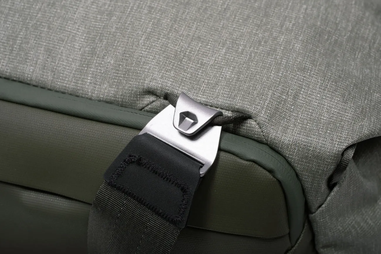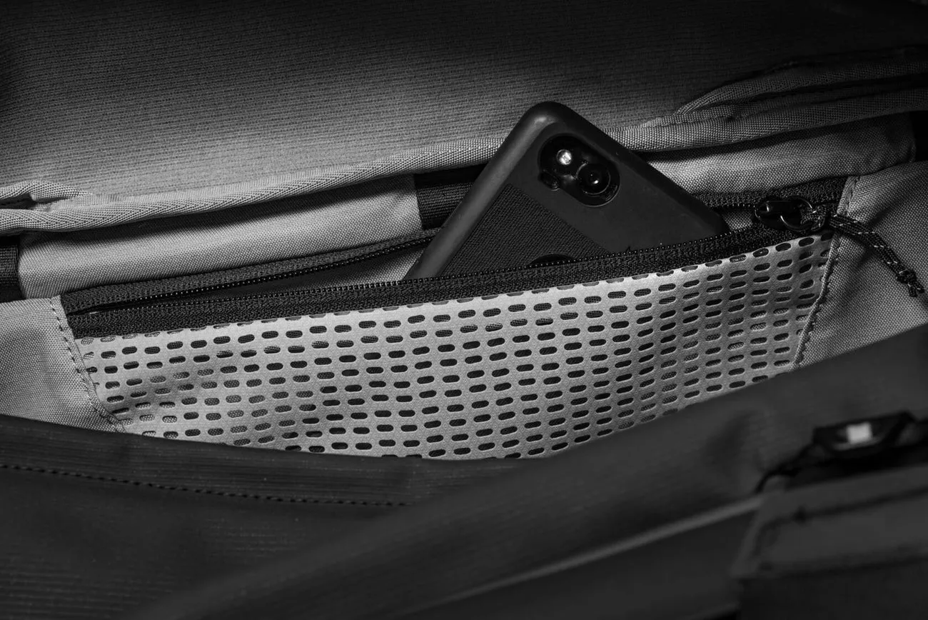 A táska két belső hálós zsebbel és négy külső cipzáras zsebbel rendelkezik a rendezett tárolás érdekében. Úgy tervezték, hogy elférjenek benne a Peak Design csomagoló- (Packing- ) és kamerakockák (Camera Cube) (35 literes 3 egység, 65 literes 4 egység), és becsatolható pontokkal rendelkezik Peak Design kamerakockák számára.