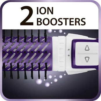 A kefében lévő két ionizátor egyidejűleg negatív töltésű ionokat generál, melyek csökkentik a sztatikus elektromosságot és a haj kócolódását.