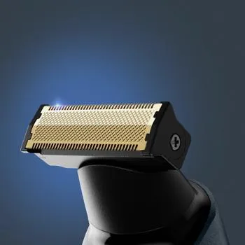 A titán felületű, prémium rozsdamentes acélból készült pengék garantálják az egyetlen mozdulattal történő tökéletes nyírást, még sűrű szakáll esetén is.