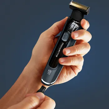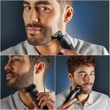 Többfunkciós szakállvágó a szakáll nyírásához, a szélek formázásához és borotválkozáshoz**, az egyedileg kialakított szakállstílushoz. 5 fésűs tartozékkal, így minden szakálltípushoz alkalmas - sűrűbb szakállra is.