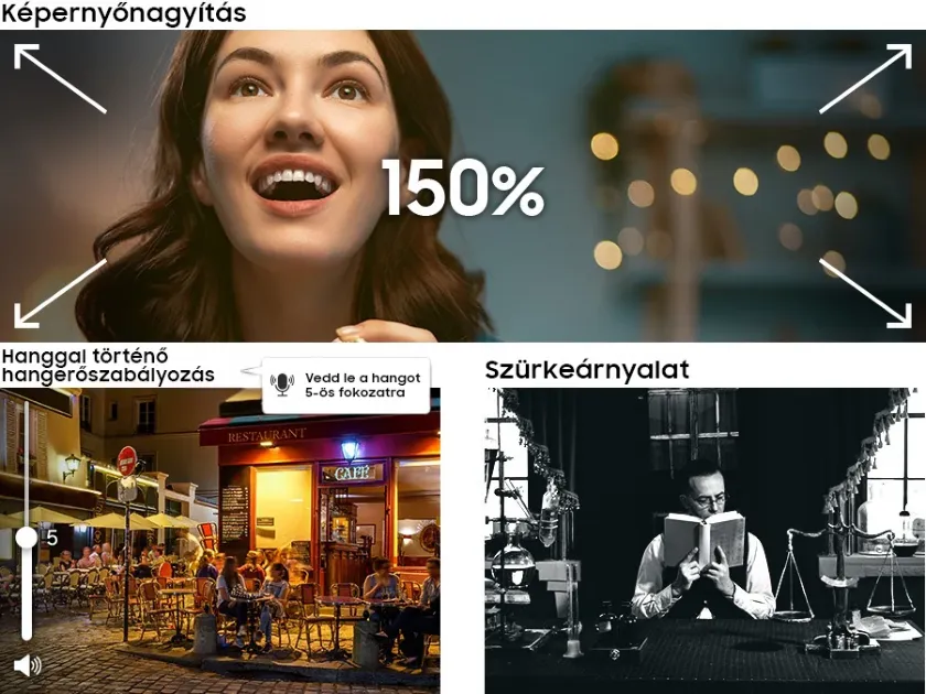 A Smart Monitort a hozzáférhetőség szem előtt tartásával tervezték, különösen a gyengénlátó felhasználók igényeinek figyelembevételével. Olyan funkciókkal van felszerelve, amelyek megkönnyítik a képernyő megtekintését és optimalizálását, többek között lehetővé téve a képernyő nagyítását, a színváltást és a hanggal történő hangerő- és csatornaváltoztatást.