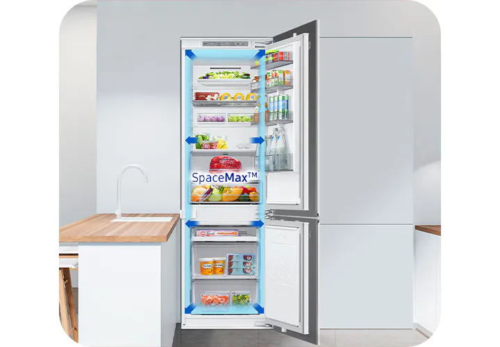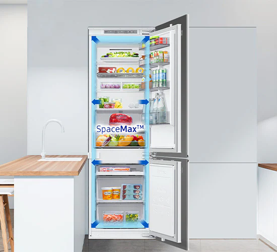 Tárolj több ételt a hatalmas 264 literes* hűtőben, ami a sztenderd 550 mm-es mélységnek megfelel, így tökéletesen fog illeszkedni a bútoraid közé. A SpaceMax™ technológia magas hatékonyságú szigetelésének köszönhetően a falai sokkal vékonyabbak. Így nagyobb térfogat mellett sem lóg ki a munkalap síkjából.