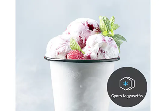 Fagyaszd le ételeidet, vagy készíts gyorsan jeget! Egy gombnyomásra a Gyors fagyasztás funkció rendkívül hideg levegőt fúj a fagyasztóba, és automatikusan a legalacsonyabb hőmérsékletre állítja a fagyasztó hőmérsékletét. Ideális fagyasztáshoz vagy fagyasztott ételek megszilárdításához és jégkészítéshez.