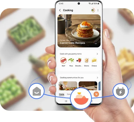 Kezeld, készítsd el és vásárolj élelmiszert hatékonyabban! A SmartThings főzés* lehetővé teszi, hogy listát készíts a hűtőszekrényben lévő ételekről, és kezeld a lejárati dátumaikat, így bármikor és bárhol ellenőrizheted, hogy mi van a hűtődben. Sőt, személyre szabott recepteket is ajánl a preferenciáid és a meglévő összetevők alapján.