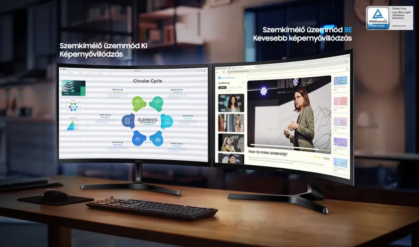 Vigyázz a szemedre, és maradj komfortos, még hosszú használat alatt is! A TÜV által hitelesített fejlett szemvédelmi technológia a kék fények minimalizálásával és az irritáló képernyő villódzásainak a csökkentésével mérsékeli a szem fáradtságát.