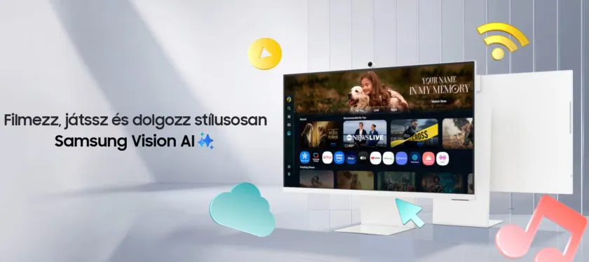 * A funkciók, szolgáltatások és alkalmazások elérhetősége országonként és régiónként eltérhet.* Előfordulhat, hogy a Samsung TV Plus és az Universal Guide egyes régiókban nem elérhető.* Egyes funkciók külön előfizetést igényelhetnek.* A felhasználói felület előzetes értesítés nélkül változhat.* Ez a Smart monitor nem tartalmaz TV-tunert, amely nem szükséges a streaming alkalmazásokhoz.* Internetkapcsolat szükséges.* A távirányító specifikációi országonként és régiónként eltérőek.* A billentyűzet- és egérvezérlés kompatibilitása alkalmazásonként eltérő.* Az intelligens funkciók teljes köréhez, például a hálózat alapú szolgáltatásokhoz, alkalmazásokhoz (beleértve a játékokat és a streaming szolgáltatásokat), valamint az intelligens otthoni funkciókhoz való hozzáféréshez Samsung Account szükséges. Bejelentkezés nélkül a funkciók csak külső eszközökkel, pl. HDMI-n keresztül használhatók. Ingyenes Samsung Accountot a https://account.samsung.com oldalon lehet regisztrálni. Felhasználási feltételek érvényesek.