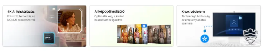 * A tartalom és a szolgáltatások régiónként eltérőek lehetnek, és előzetes értesítés nélkül változhatnak. * A használat előtt a Smart Hub Általános Szerződési Feltételek és Adatvédelmi Szabályzat elfogadása szükséges. * Egyes tartalmak és szolgáltatások regisztrációhoz és előfizetéshez kötöttek. * Samsung Account szükséges. * A Tizen OS frissítések 2025-től kezdődően legfeljebb 7 évig támogatottak a 2025-ben megjelent termékek esetében. * Felhívjuk figyelmedet, hogy a frissítés nem terjed ki a hardverrel kapcsolatos teljesítményre, funkciókra vagy tartósságra!