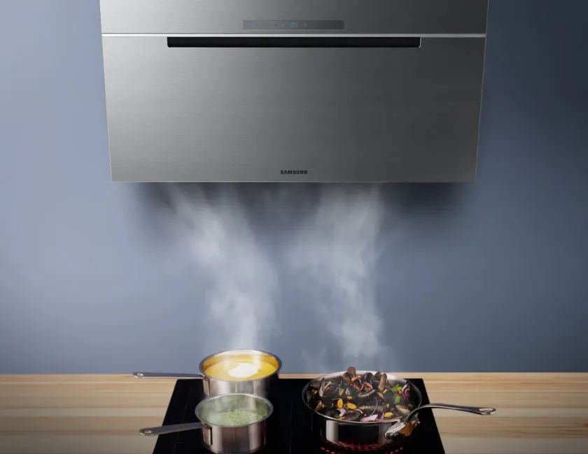 A prémium, Flourishy kialakítás segíti az elegáns és modern konyhabelső kialakítását, amelyben a konyhai készülékek harmonizálnak egymással. Vékony profilja és feltűnő, fekete rozsdamentes acél kialakítása illeszkedik a többi Samsung termék elegáns és modern stílusához, összhangot teremtve ezzel a konyhában.